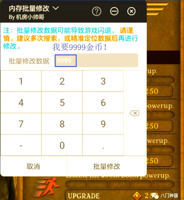在《神庙逃亡》中,当我们尝试修改金币数量时,会发现输入129后出现众多数值选项,令人眼花缭乱。此时,不必焦虑,只需先进入游戏,通过正常游戏流程轻松赚取几个金币。这样,我们就能更清晰地定位到正确的金币数值,从而进行准确的修改。