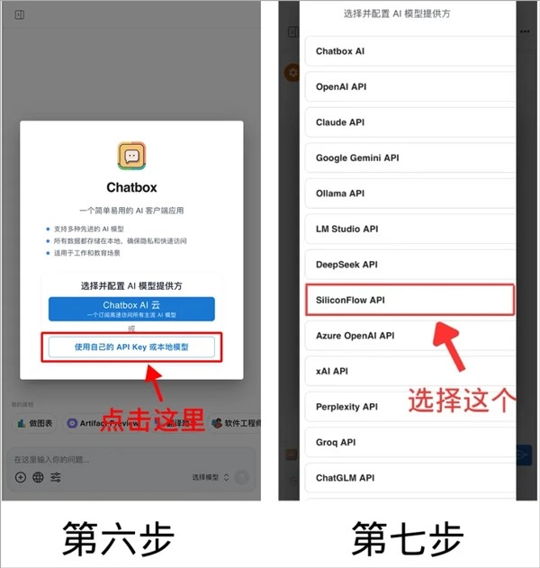 第六、七步:在Chatbox中选择并配置AI模型提供方