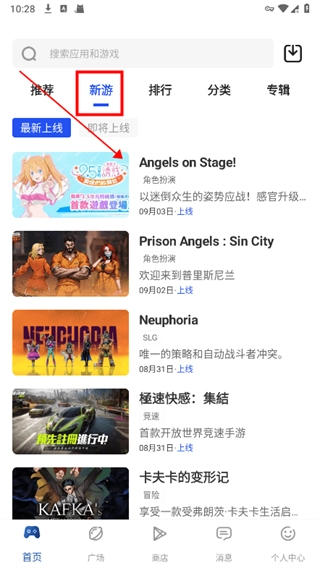 2、在新游栏目,可以看到最新上线游戏和即将上线游戏;
