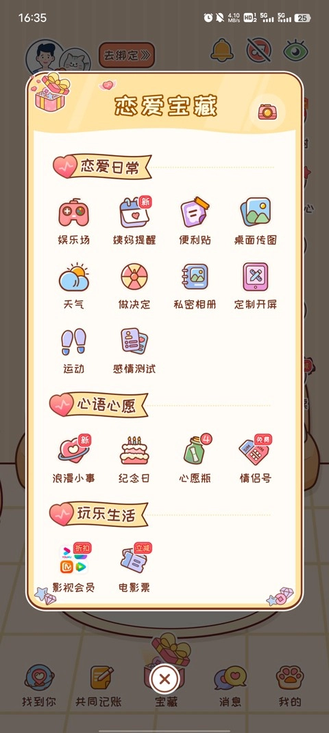 6、完成绑定操作后,点击应用内的“宝藏”选项,里面包含了不少实用的功能。