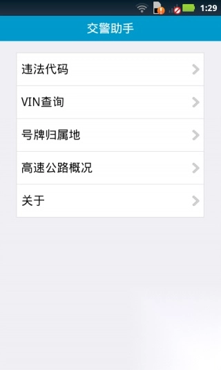 1、打开进入后,可在此处查询违法代码、常用法律法规、VIN码等信息;