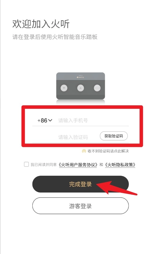 1、打开输入手机号获取验证码后登录,即可使用智能音乐踏板功能。