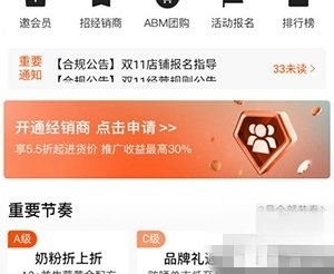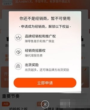1、启动ABM手机应用程序,找到并点击“开通经销商”的功能选项。