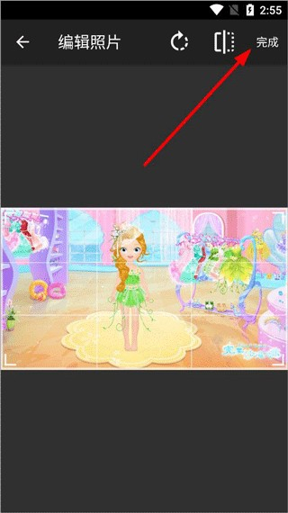 打开相册并选中照片,拖动边框完成裁剪操作后,点击右上角的“完成”按钮即可。
