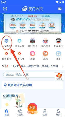 1、进入软件首页后,我们可以直接点击“公交线路”选项。