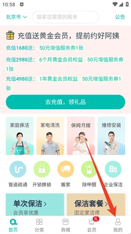 2、然后在该页面最下面找到“阿姨/技师报名”。