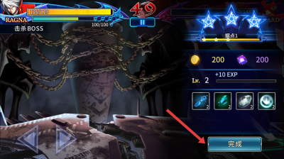 4、通关之后,点击【完成】按钮,就能领取金币、经验以及道具奖励。