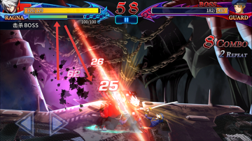 2、在右侧屏幕上左右滑动,即可施展出左右勾拳,连击数能够提升到【28-COMBO】,这样就能快速消耗敌人的血量啦。