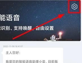 1、在小奕语音助手首页点击右上角的设置图标;