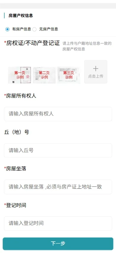 填写学生及家长相关信息,上传户籍、房产信息图片,随后点击“下一步”。
