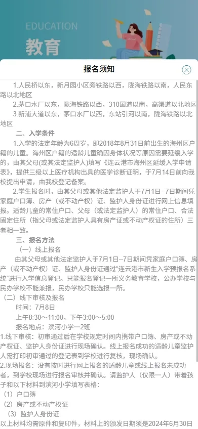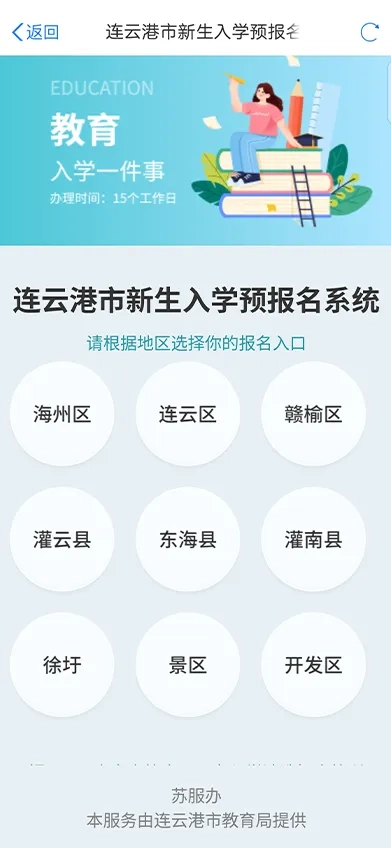 打开“我的连云港”,在首页下方“政务服务”栏目中点击“新生预报名”即可进入报名系统。