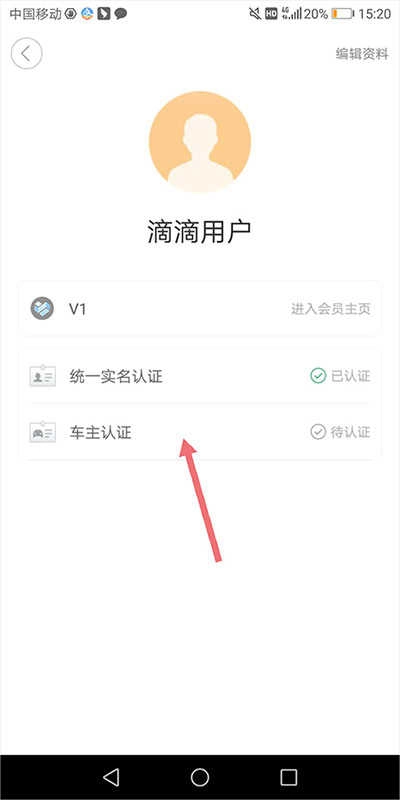 2、在新页面中,找到并点击“车主认证”入口;