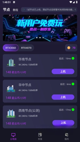 你还在为手里那台老旧的设备感到烦恼吗?来试试弧星云电脑吧!这款云端游戏平台能让你轻松畅玩3A大作,仿佛置身于游戏的世界中,随时享受4K画质和120帧的超流畅体验哦。更酷的是,它完全不占用你手机的存储空间,还了多个节点供你进行选择,新用户注册还能获得免费的体验时长,简直是太划算了,别忘了领取你的星云币奖励!