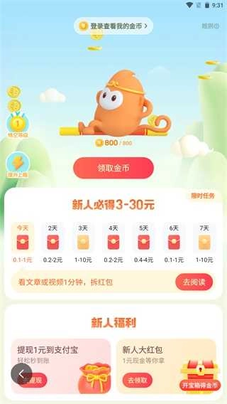 2、每日签到、完成指定任务均可获得额外金币奖励,累计可提现至支付宝,到账快速无延迟。