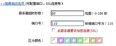 服务器超时秒数:可设置为0至180范围内的数值。若设定为90秒,当电脑在90秒内未能成功连接到指定的外域POP服务器时,系统即判定为超时,此时院邮件系统会弹出相应的提示信息。