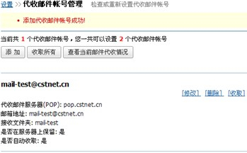 4代收邮件的账号配置操作完成后,系统会自动弹出配置成功的提示内容。