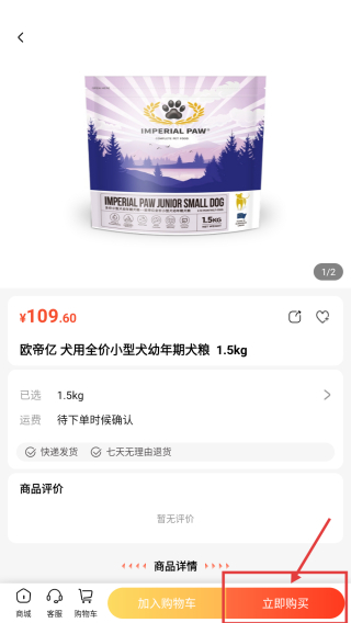 4、在商品详情页面,点击立即购买按钮,推进商品购买流程。