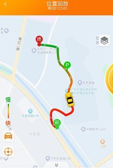 2、历史回放:轨迹回放功能清晰记录每次出行的道路及停车位置,使车主对行车路径了然于心。