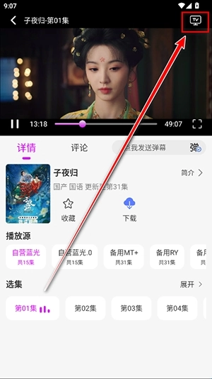 2、在播放页面点击右上角的TV图标。