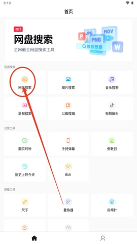 3、接下来选择你需要的功能,比如我们可以试试“网盘搜索”;