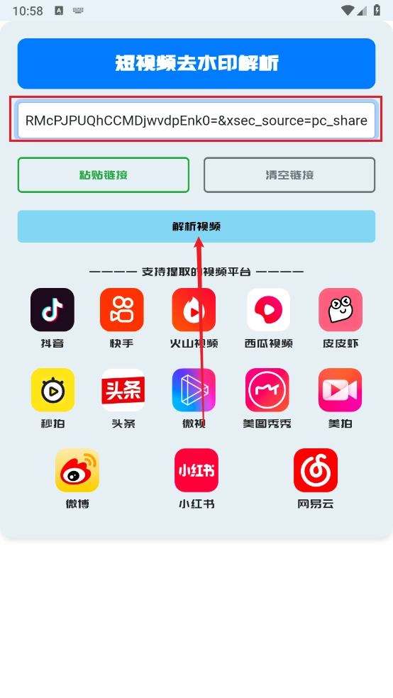 3、支持从多个平台提取视频,接着复制需要解析的视频链接即可。