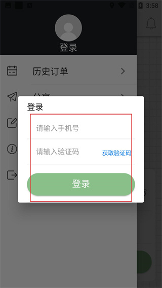 1进入百步召车主界面后,点击左上角的头像区域,会展开功能菜单,里面有历史订单、分享等选项,这些功能需要登录后才能使用。