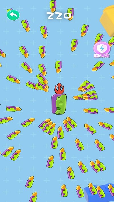 1用手指在屏幕上滑动来操控萝卜形状的小刀,当它碰到和自己一样类型的物体时,就会自动合在一起变得更厉害。