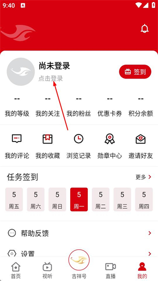 1在吉林融媒应用的主界面,找到位于右下角的“我的”入口并点击,即可跳转至个人中心页面。