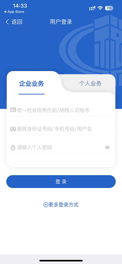 2进入系统登录界面后,用户可根据业务类型选择企业端或个人端两种登录入口;首次使用的用户需点击注册按钮跳转至信息填写页面完成账号开通。