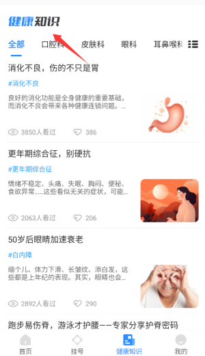 1进入北京名医挂号网平台后,在主页的功能导航区域找到“健康知识”相关板块并点击,即可查看由专业人士提供的各类医疗科普内容。