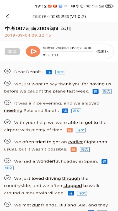 2.跟随提示朗读句子或段落,系统实时显示发音评分