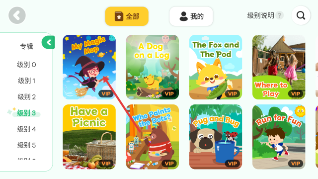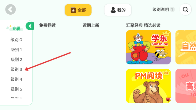 2、在图书馆选【级别3】,查看对应级别书籍。
