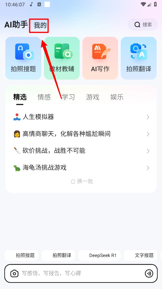 3、然后在我的页面点击"悬浮窗搜题"。