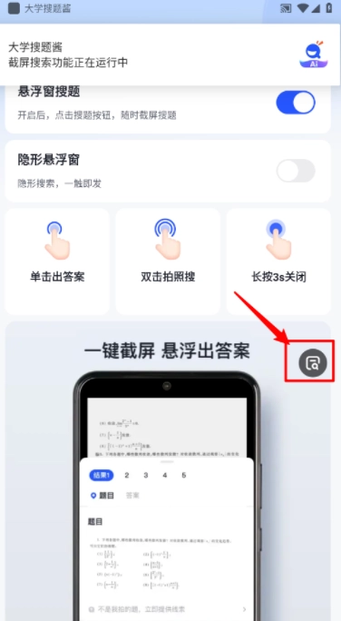 5、最后点击悬浮图标就可以开启搜题。
