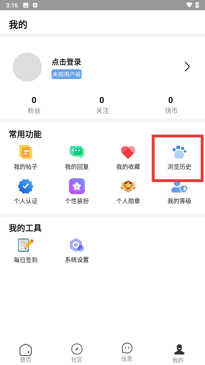 1、首先需要安装快发社区,打开应用。