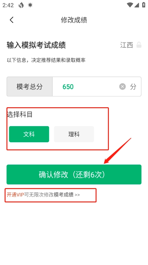 3、然后选择模拟分数和科目,点击"确认修改"即可。