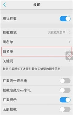 3、然后,在设置中点击白名单的选项进入。