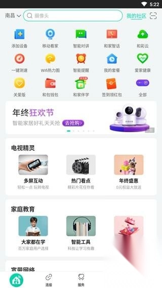 1、打开最新版的和家亲应用,从图中可以看到,首页展示了该软件的诸多实用功能;