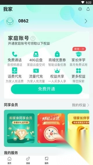 5、最后,点击“我家”,你可以在这里开通家庭账号,享受全家服务。