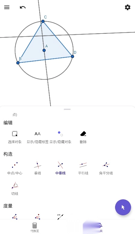 2、上方是作图区域,下方是作图工具,包括基本工具、构造工具、度量工具、变换工具等,方便大家快速作图。