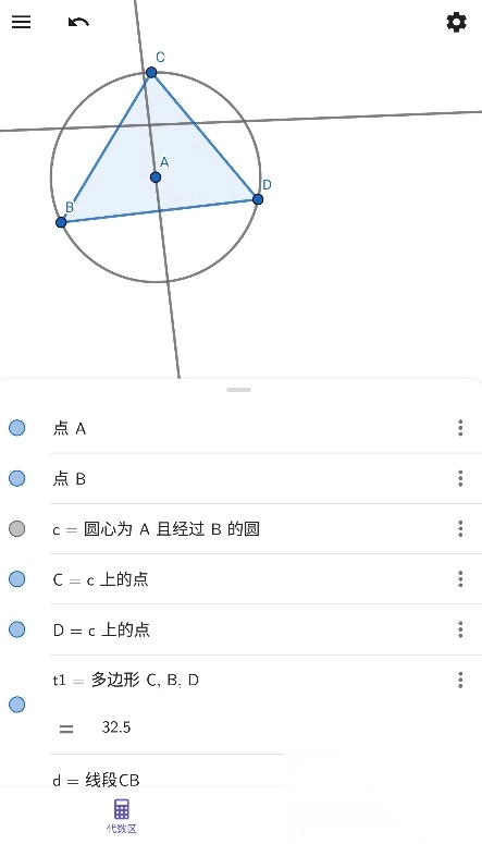 geogebra图形计算器软件的使用非常便捷,轻松极速的计算公式结果哦,支持自定义工具哦,并保存用户的常用工具,下次使用更加便捷省心哦,也是一款非常好用的学习助手,愉快的使用体验哦。