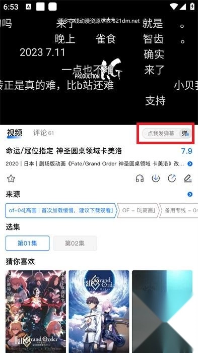 4、只要是打开弹幕功能之后,每一集都会默认打开弹幕内容,开始播放就会出现弹幕。
