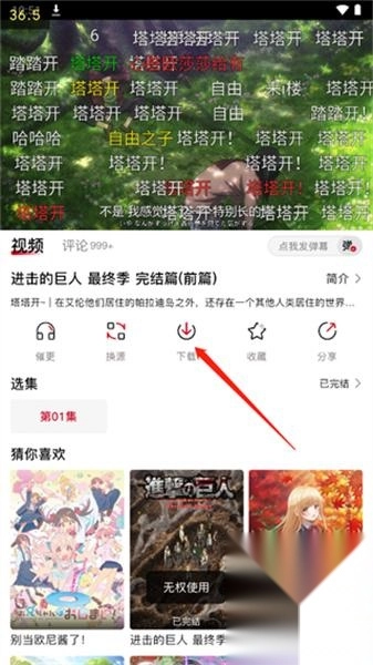 1、在软件中找到自己相看的动漫剧集,点击进入到播放界面,然后才能看到弹幕;