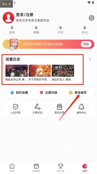 4.最后来到【我的】页面中,可以查看刚刚缓存的日漫资源以及查看观看历史浏览记录等。
