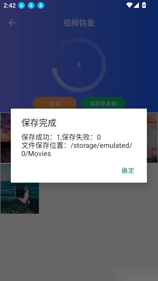 5、看完广告后就能成功保存,点击“确定”按钮即可一键恢复。