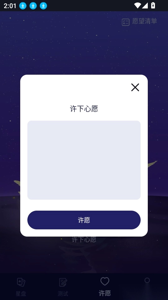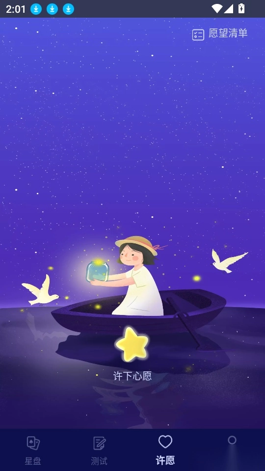 3、在软件星盘界面的下方菜单栏里,点击“许愿”按钮以进入下一步操作。