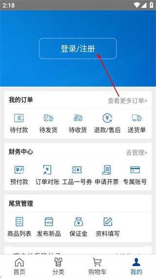 2在个人中心页面,点击登录注册按钮,进入账户登录页面。