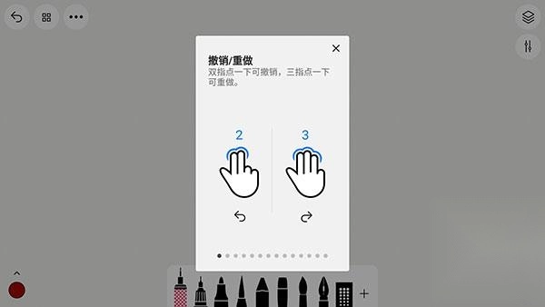 1、要是画画时出错了,用双指轻点一下就能撤销当前这一步;要是对画出来的效果不满意,用三指轻点一下就能重新进行创作。