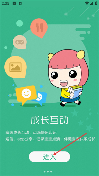 1、在“成长互动”页面点击【进入】按钮,即可进入幼儿宝的登录页面。