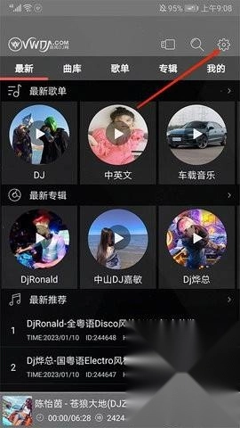 1、在手机里找到清风音乐APP并打开,进入到应用的主界面后,点击右上角那个形似“齿轮”的图标。